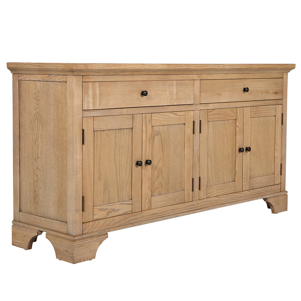 Add timeless elegance and practical storage to your home with the Furniture in Fashion Valencia Wooden Sideboard With 4 Doors 2 Drawers In Natural. Designed with a natural wood finish, this sideboard exudes warmth and sophistication, making it a perfect addition to both modern and traditional interiors. Its clean lines and minimalist design bring a sense of balance and charm to any living or dining space. Crafted for functionality as well as style, the Valencia sideboard offers ample storage with four spacious doors and two smooth-glide drawers. Perfect for storing dining essentials, tableware, or household items, this sideboard helps you maintain a clutter-free home while elevating your decor. Sturdy construction and a natural wood finish ensure durability, making it a long-lasting piece of furniture for your home. Bring both storage and sophistication to your home with the Furniture in Fashion Valencia Wooden Sideboard With 4 Doors 2 Drawers In Natural, the perfect choice for style-conscious homeowners. FEATURES : Material : Wooden Finish : Natural Valencia Sideboard in Natural a harmonious blend of elegance and functionality for your home Crafted from solid oak and veneers with a washed finish, this sideboard exudes rustic charm and contemporary appeal Featuring velvet-lined drawers and two internal fixed shelves, the Valencia Sideboard offers ample storage space for your belongings Versatile Design Washed Effect Spacious cupboards ideal for storing dinnerware, glasses, or household items Two smooth-glide drawers perfect for cutlery, linens, or small accessories Elegant natural finish blends seamlessly with modern or traditional decor Sturdy wooden construction ensures durability and long-lasting use Ideal for dining rooms, living rooms, or hallways Functional design with a blend of practicality and timeless style Available at an affordable price Images shown are for illustration purpose only DIMENSIONS : Height : 830mm Width :